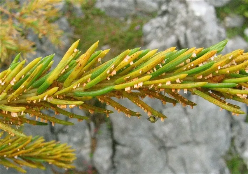 Pilzliche Nadelerkrankungen kommen selten vor. Eine Bekämpfung ist kaum möglich.