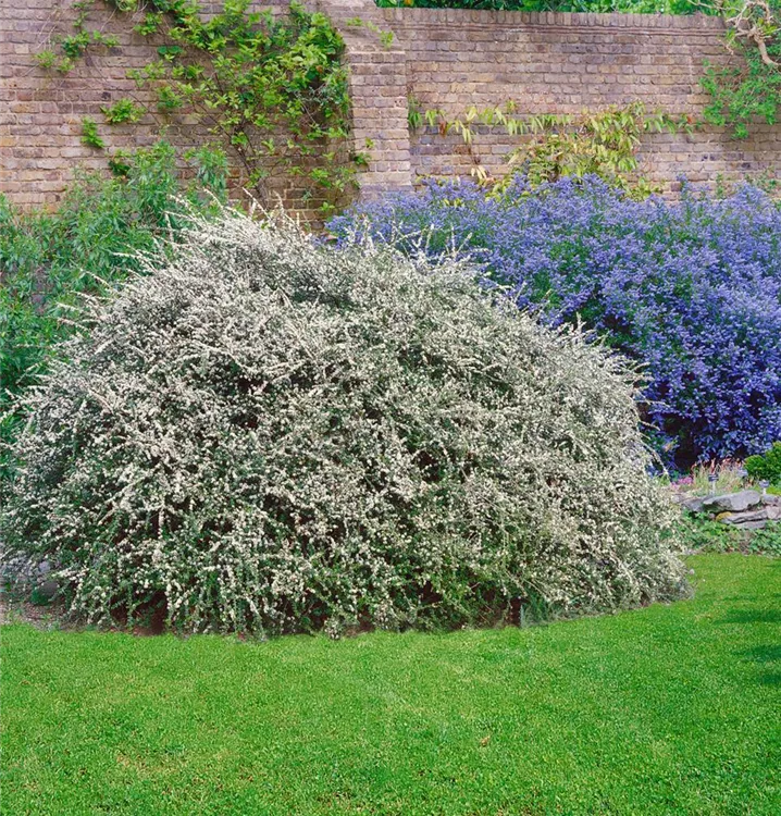 Die Zwergmispel (Cotoneaster) eine Gartenpflanze, die, je nach Sorte, Blüten in verschiedenen Farben hervorbringt.