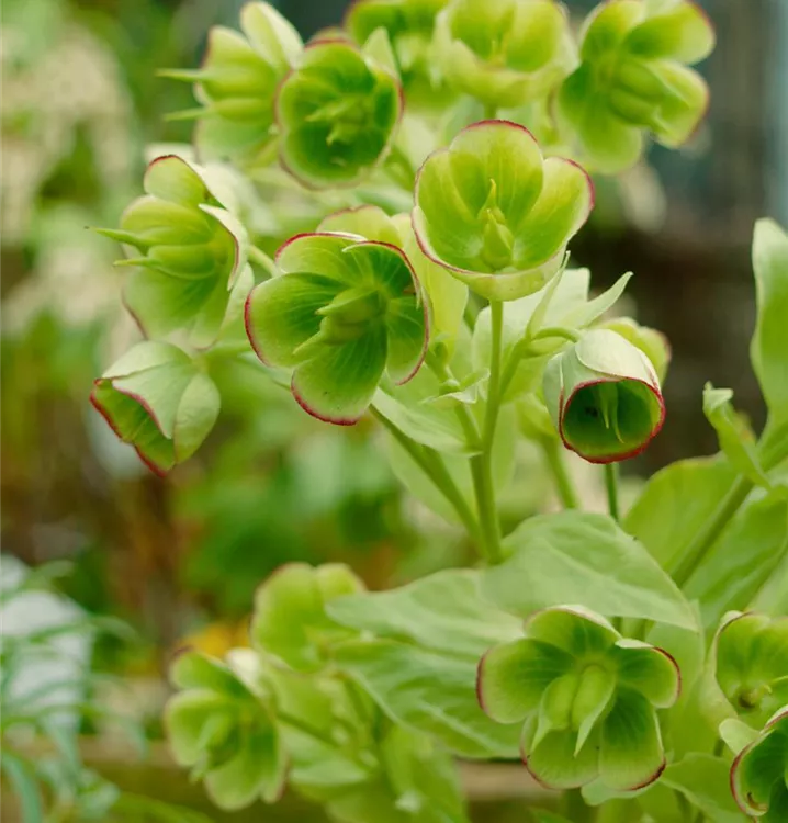 Die Palmblatt-Nieswurz (Helleborus foetidus) ist eine aufrechte immergrüne Staude, die von Februar bis Mai hellgrüne, glockenförmige Blüten bildet. An einem sonnigen bis halbschattigen Standort mit durchlässigem, humosem Boden erreicht sie gewöhnlich eine Höhe von ca. 50 cm und wird ca. 50 cm breit. Die Palmblatt-Nieswurz ist gut frostverträglich.