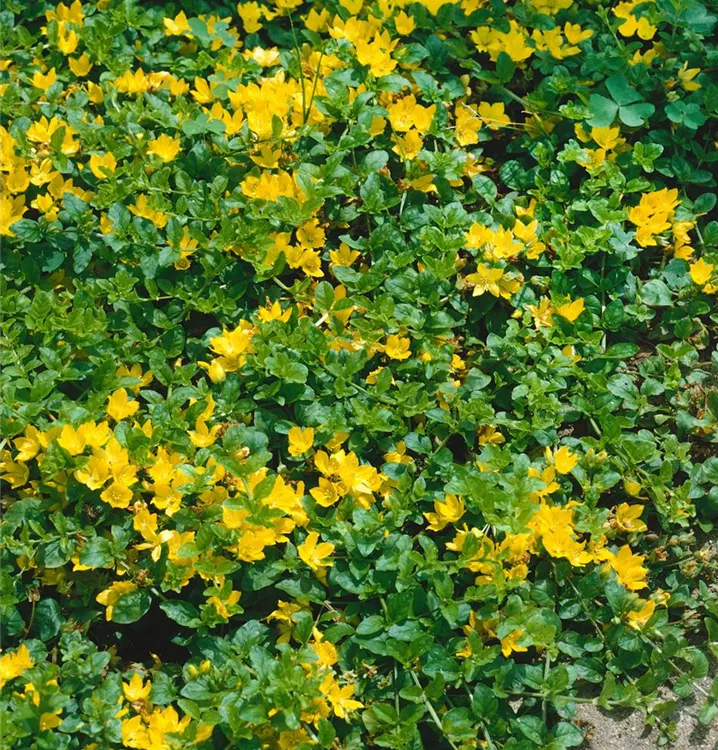 Lysimachia nummularia bildet schalenförmige, gelbe Blüten ab Mai.