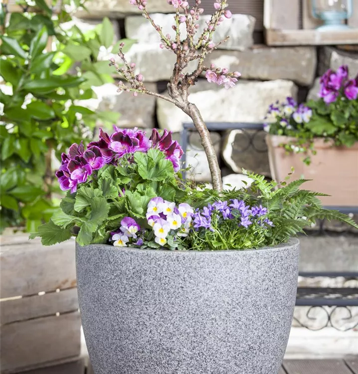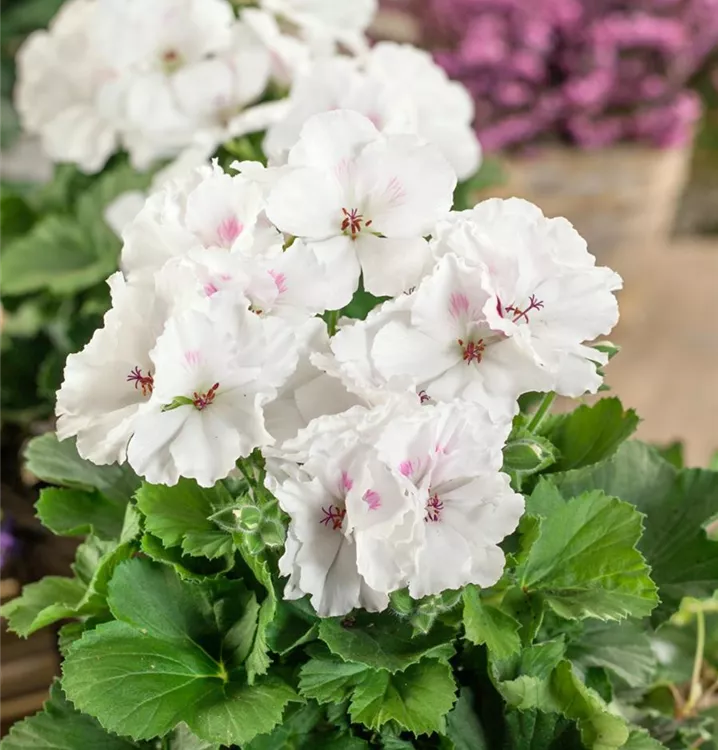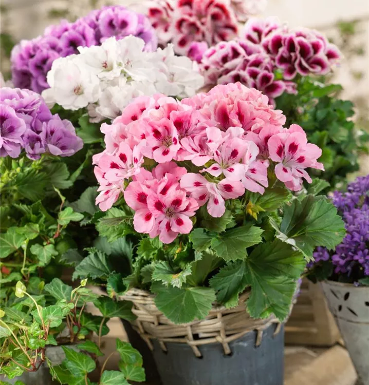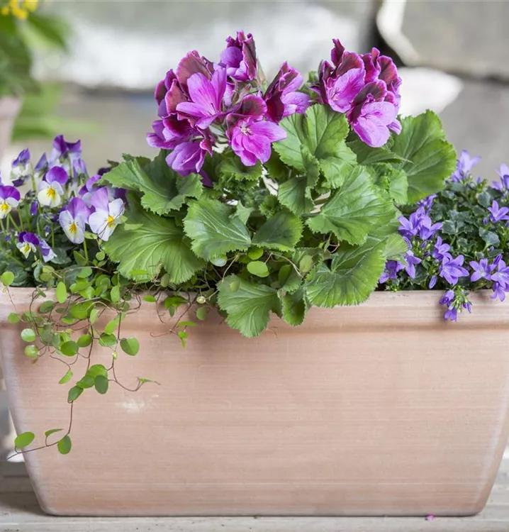 Die Geranie (Pelargonium) ist eine beliebte Pflanze für den Balkon. Die unzähligen Blüten erscheinen, je nach Sorte, in verschiedenen Farben die ganze Saison hindurch. Ein sonniger Standort und ein durchlässiges Substrat werden bevorzugt.