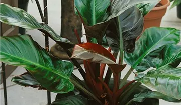 Die Blätter des Philodendrons sind dunkelgrün, herzförmig.