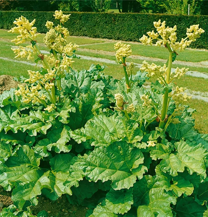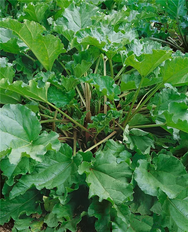 Der Krause Rhabarber (Rheum rhabarbarum) bildet Blattstiele, die säuerlich, fruchtig schmecken und bereits ab Mai geerntet werden können. Für das optimale Wachstum des Krausen Rhabarbers werden ein sonniger Standort und durchlässiger, nährstoffreicher Boden benötigt.