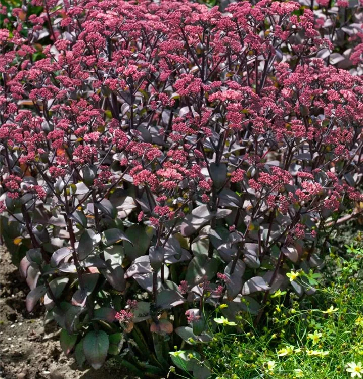 Die Fetthenne (Sedum) ist eine Staude, die, je nach Sorte, Blüten in verschiedenen Farben bildet. An einem sonnigen, windgeschützten Standort mit durchlässigem, nährstoffreichem Boden erreicht sie gewöhnlich eine Höhe von ca. 50 cm und wird ca. 80 cm breit. Die Fetthenne ist gut frostverträglich.