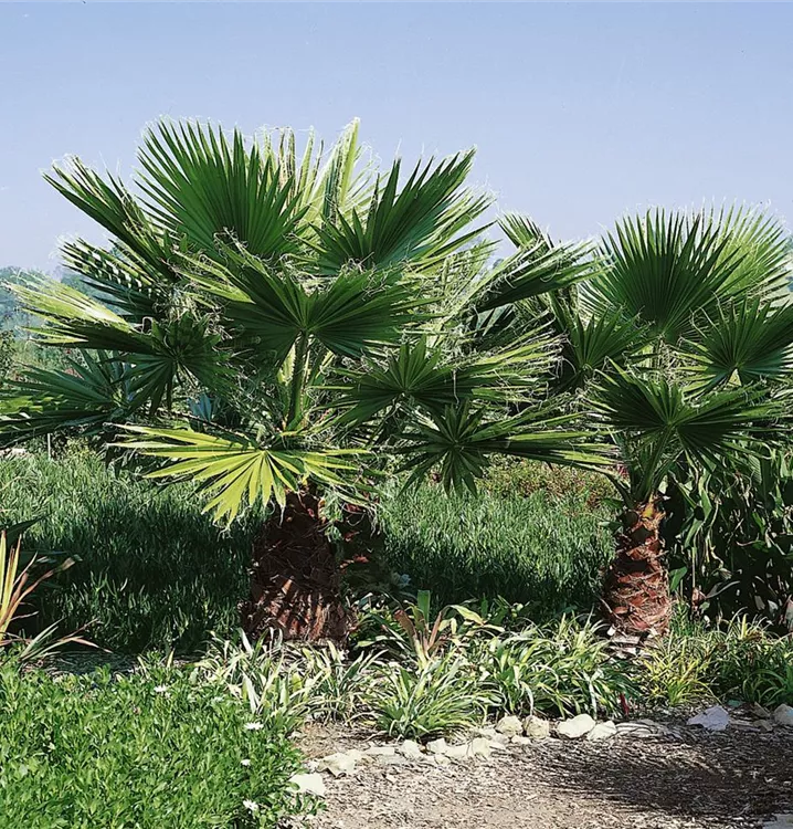 Die Mexikanische Washingtonpalme (Washingtonia robusta) ist eine sehr beliebte Kübelpflanze. Verwenden Sie bevorzugt die spezielle Kübelpflanzenerde, denn sie verdichtet sich über längere Zeit nicht.