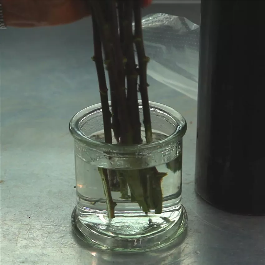 Verwenden Sie eine saubere Vase und geben Sie etwas Frischhaltemittel in das Wasser, um Keimbildung zu verhindern.
