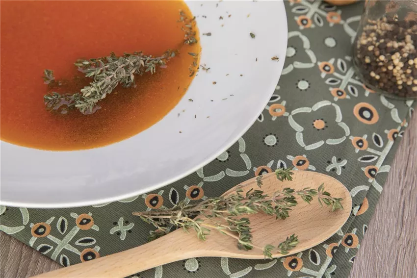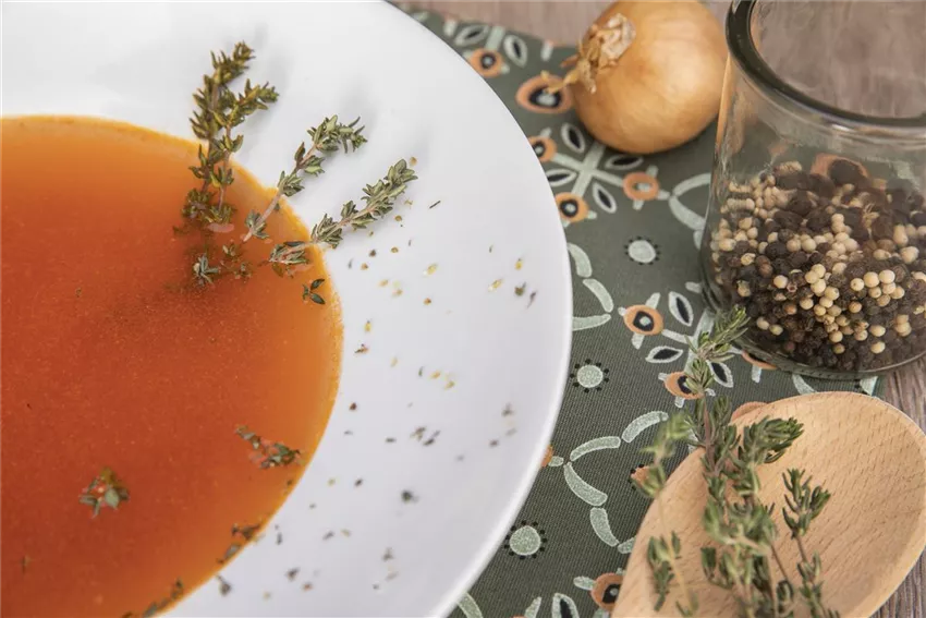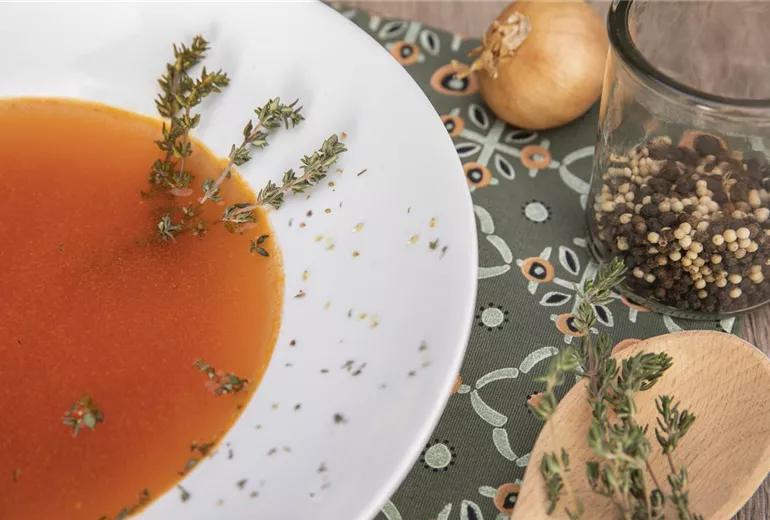 Kräftige Tomatensuppe mit Thymian und Oregano