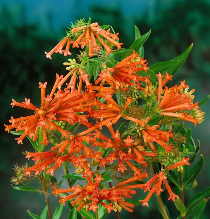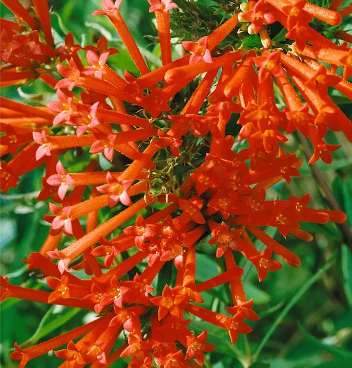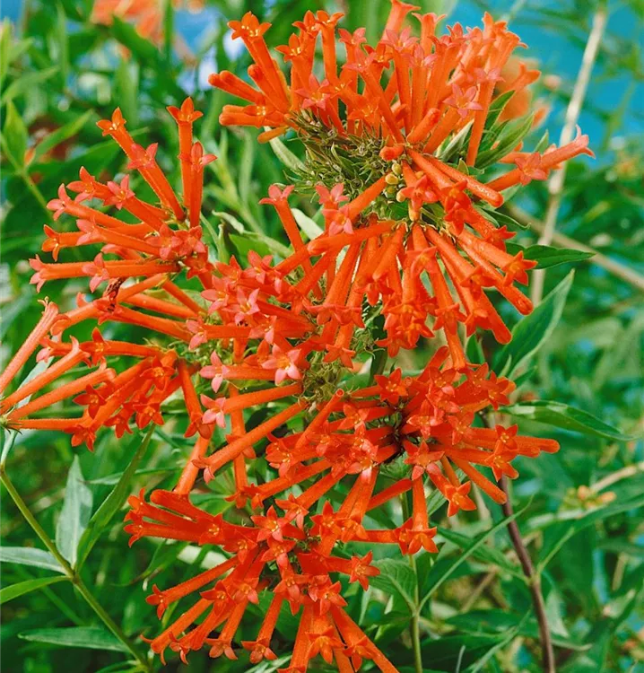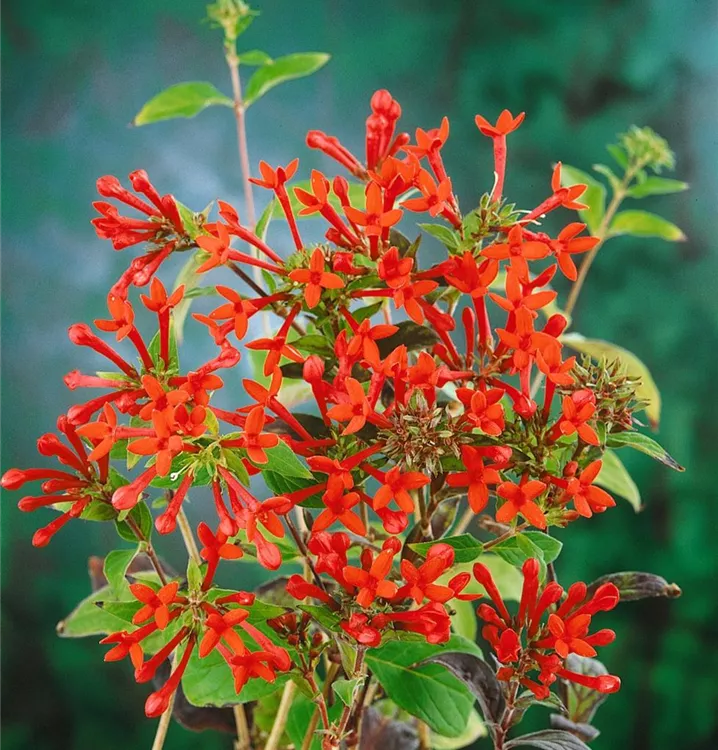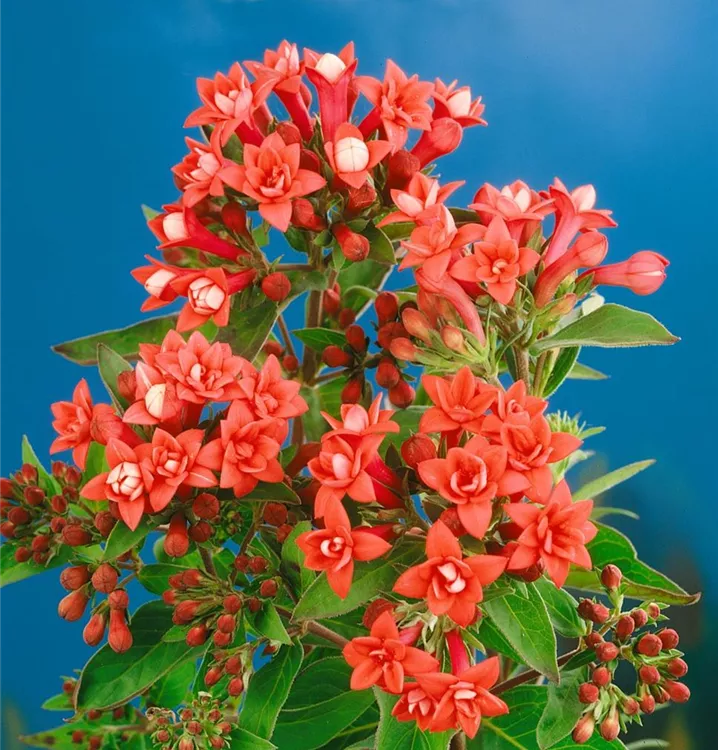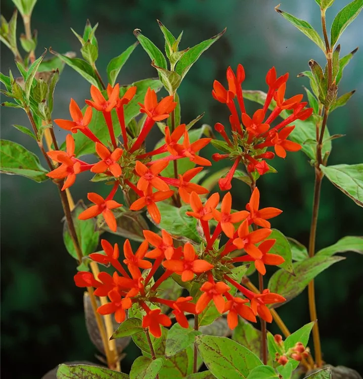 Die rosafarbenen, roten, weißen, röhrenförmigen Blüten der Bouvardie erscheinen in Dolden von Juli bis September.