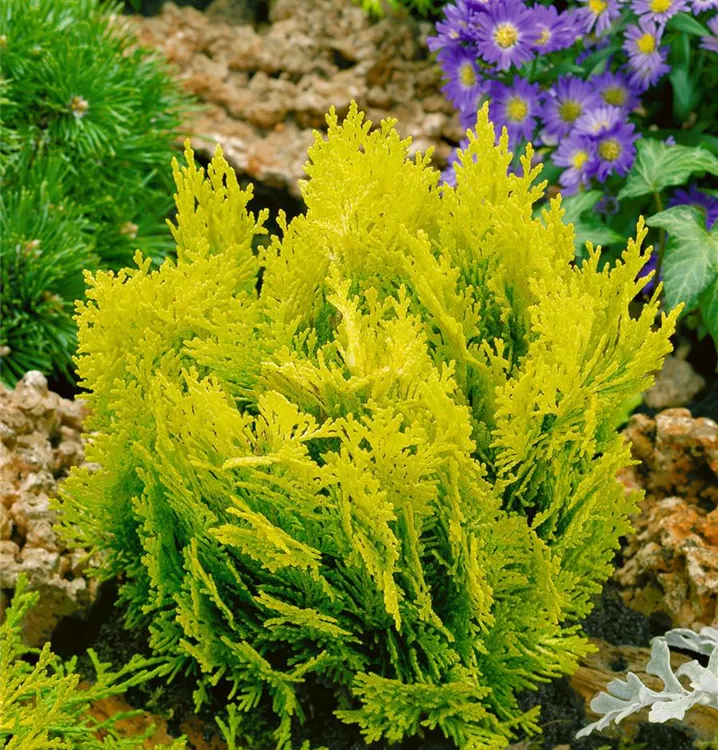 Die Gelbe Kissenzypresse 'Minima Aurea' weist eine gute Frosthärte auf.