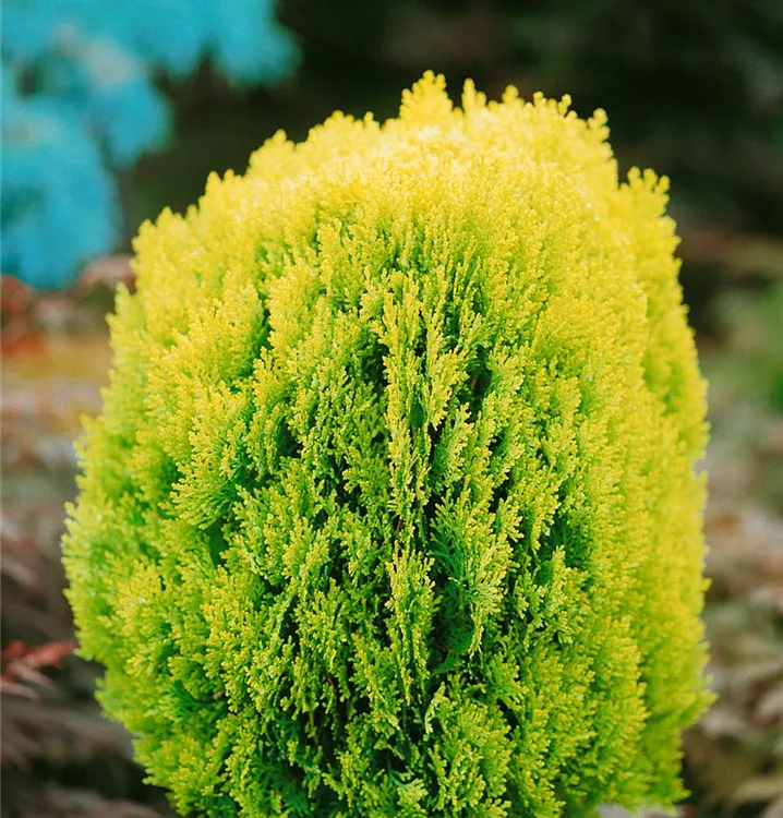 Gelbe Kissenzypresse 'Minima Aurea' ist ein kegelförmig wachsender Großbaum oder Kleinstrauch. Sie erreicht gewöhnlich eine Höhe von 0,6 - 1 m und wird ca. 0,6 - 1 m breit. In der Regel wächst sie 20 - 30 cm pro Jahr.