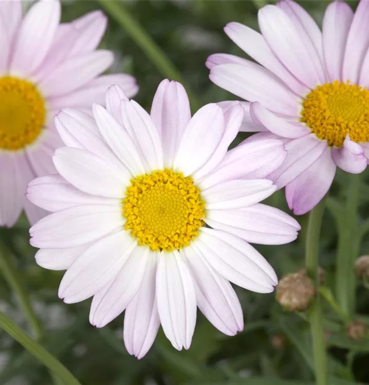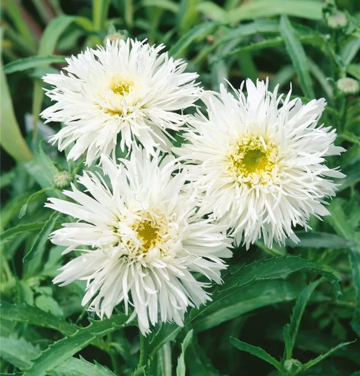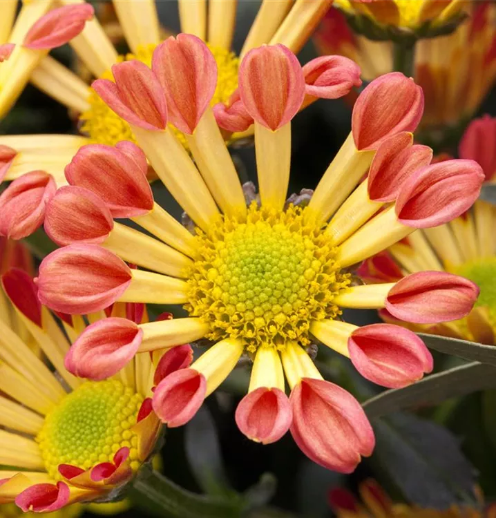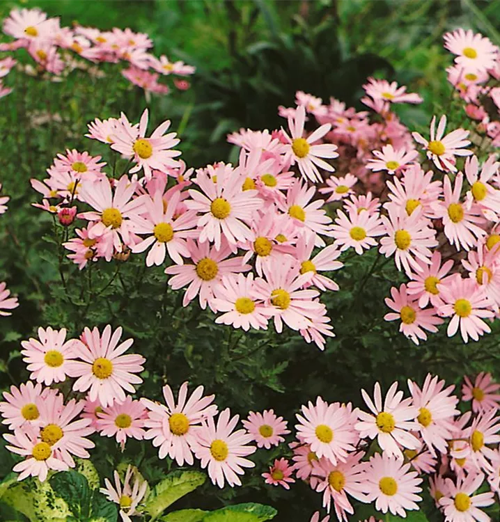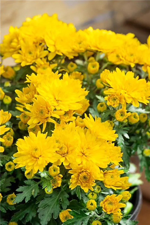 Die Chrysantheme (Chrysanthemum) ist eine buschige Staude, die, je nach Sorte, Blüten in verschiedenen Farben bildet. An einem sonnigen Standort mit durchlässigem, humosem, sandigem Boden erreicht sie gewöhnlich eine Höhe von ca. 1 m und wird ca. 1 m breit.