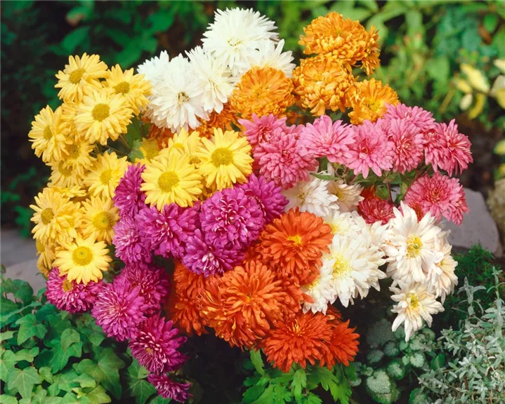 Je nach Sorte, bildet Chrysanthemum multiflora Blüten in verschiedenen Farben.