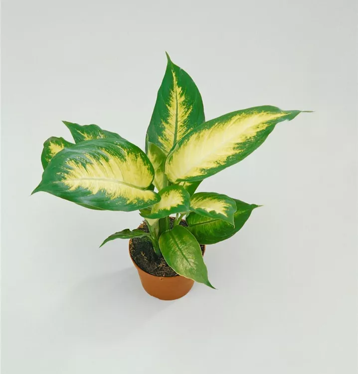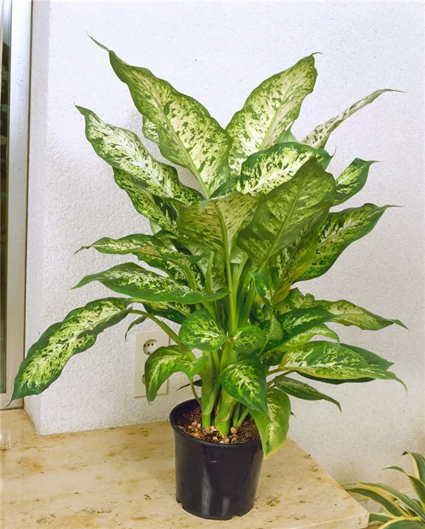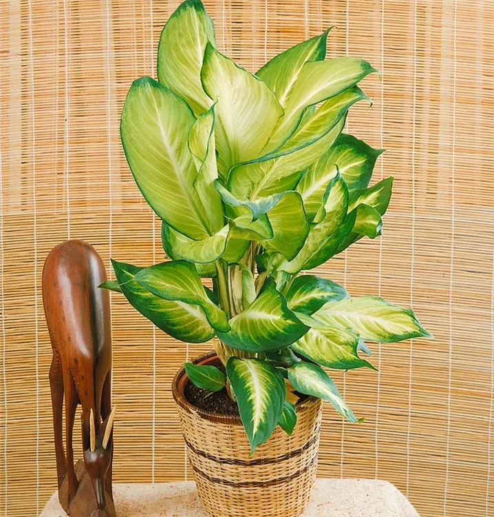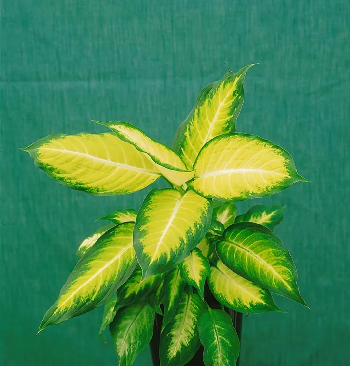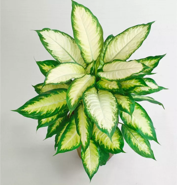 Die immergrünen Blätter der Dieffenbachie sind dunkelgrün, lanzettlich.