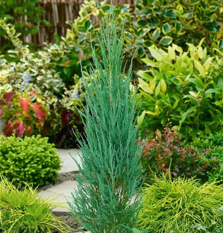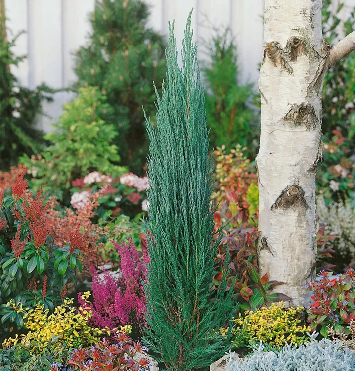 Der Virginische Wacholder 'Blue Arrow' setzt schöne Akzente gemeinsam mit: