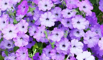 Die Petunie (Petunia x atkinsiana) ist eine beliebte Pflanze für den Balkon. Die unzähligen Blüten erscheinen, je nach Sorte, in verschiedenen Farben die ganze Saison hindurch. Ein sonniger Standort und ein durchlässiges Substrat werden bevorzugt.