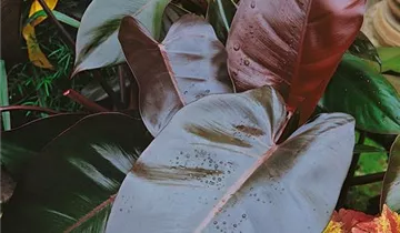 Die Blätter des Philodendrons sind dunkelgrün, herzförmig.