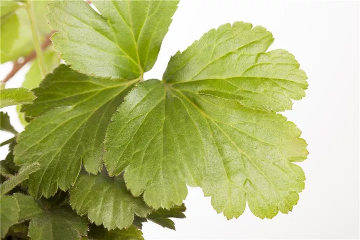 Die wintergrünen Blätter der Dreiblättrige Waldsteinie sind mittelgrün, herzförmig, dreizählig, gekerbt.