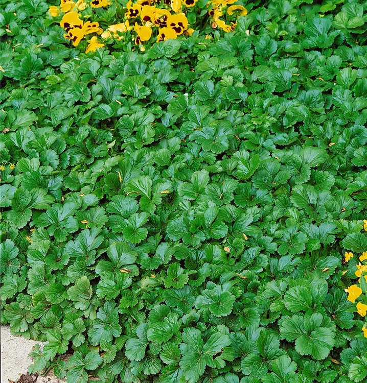 Die Dreiblättrige Waldsteinie (Waldsteinia ternata) ist eine teppichartige wintergrüne Staude, die von April bis Mai gelbe, schalenförmige Blüten bildet. An einem halbschattigen bis schattigen Standort mit durchlässigem, humosem, nährstoffreichem Boden erreicht sie gewöhnlich eine Höhe von ca. 10 cm und wird ca. 30 cm breit. Die Dreiblättrige Waldsteinie ist gut frostverträglich.